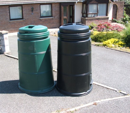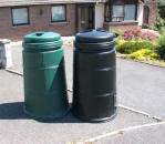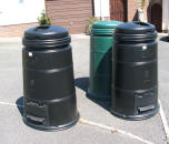 Dr Who and The Daleks Previous <> I am a Dr Who fan and have been since it started way back when our children used to hide behind the sofa, I even took our eldest son (when he was small, any excuse) to see one of the first films, but I did not expect to have the Daleks invade Pembroke Dock. Just to prove a point here they are, well it started with just one but true to tradition they soon multiplied, now I have to hope that the Tardis gets here quick before we are EXTERMINATED. Recycling Compost Bin to Dalek |