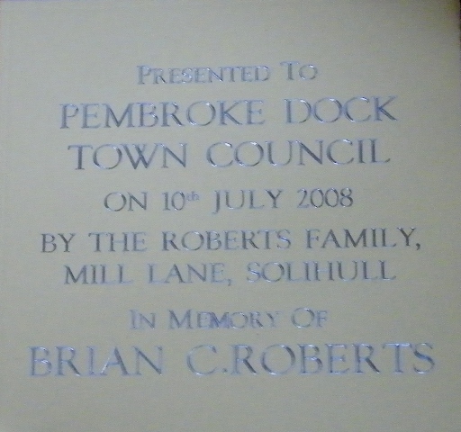 presented to the Town by Mr and Mrs Roberts who explained "My