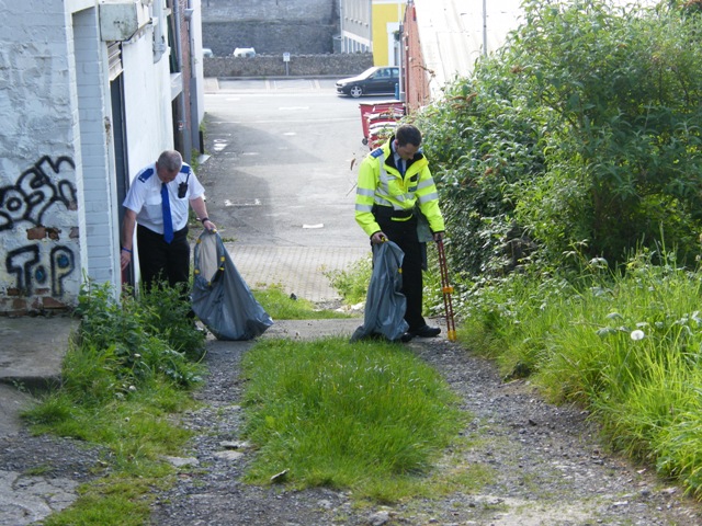Gordon Street Clean-up Once again the volunteers were out cleaning up after everyone else. This time our local constabulary were on hand to help. Well done to you all. You might have to look very hard to spot the helpers.